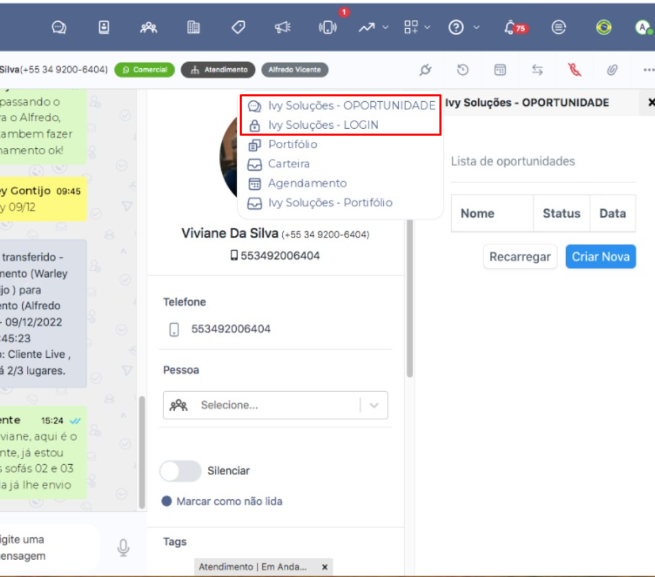 - Cada Contato criado na DigiSac, é criado um Lead no sistema IVY automaticamente.
