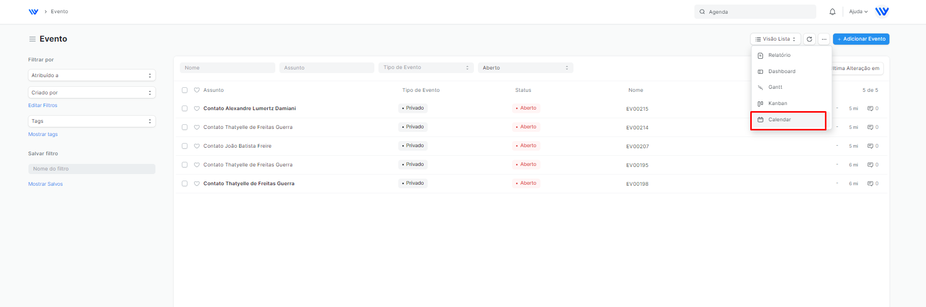 - Acesso a Agenda com lista de eventos do usuário(Ver imagem 03).